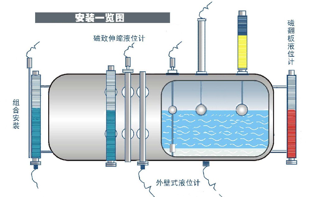 ??⑤液位計安裝完畢后,需用磁鋼進行校正,使零位以上顯示白色,零位以下顯示紅色。