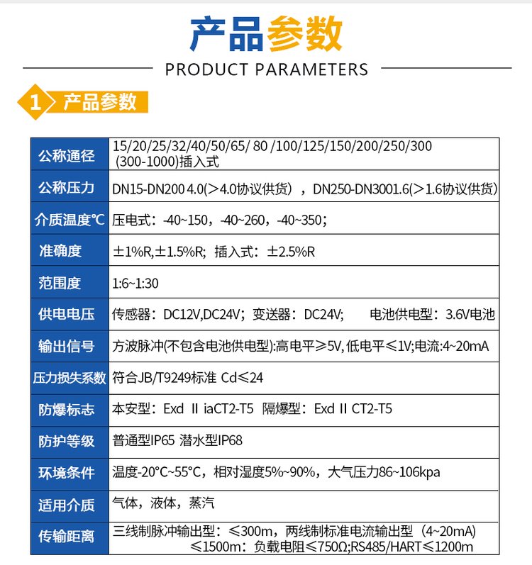 注:DN300以上口徑推薦使用插入式渦街流量計,可定制。